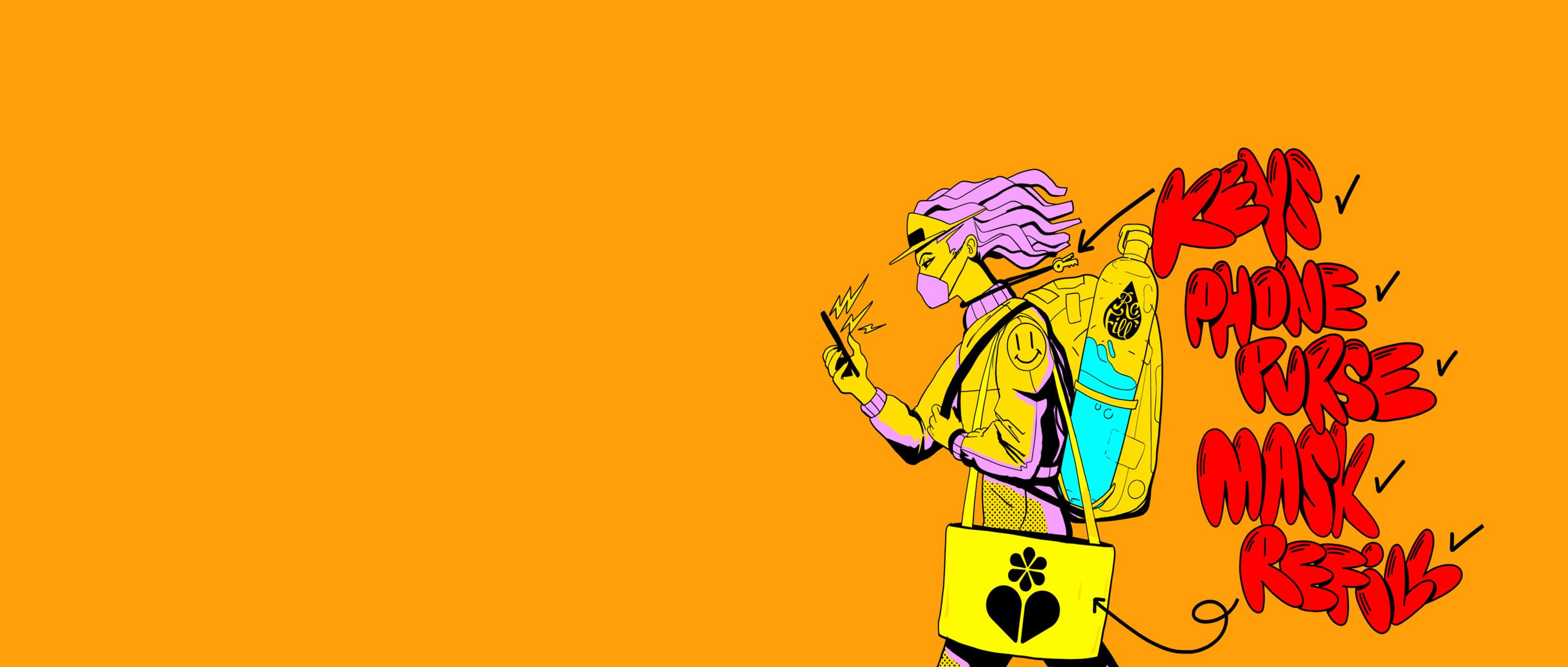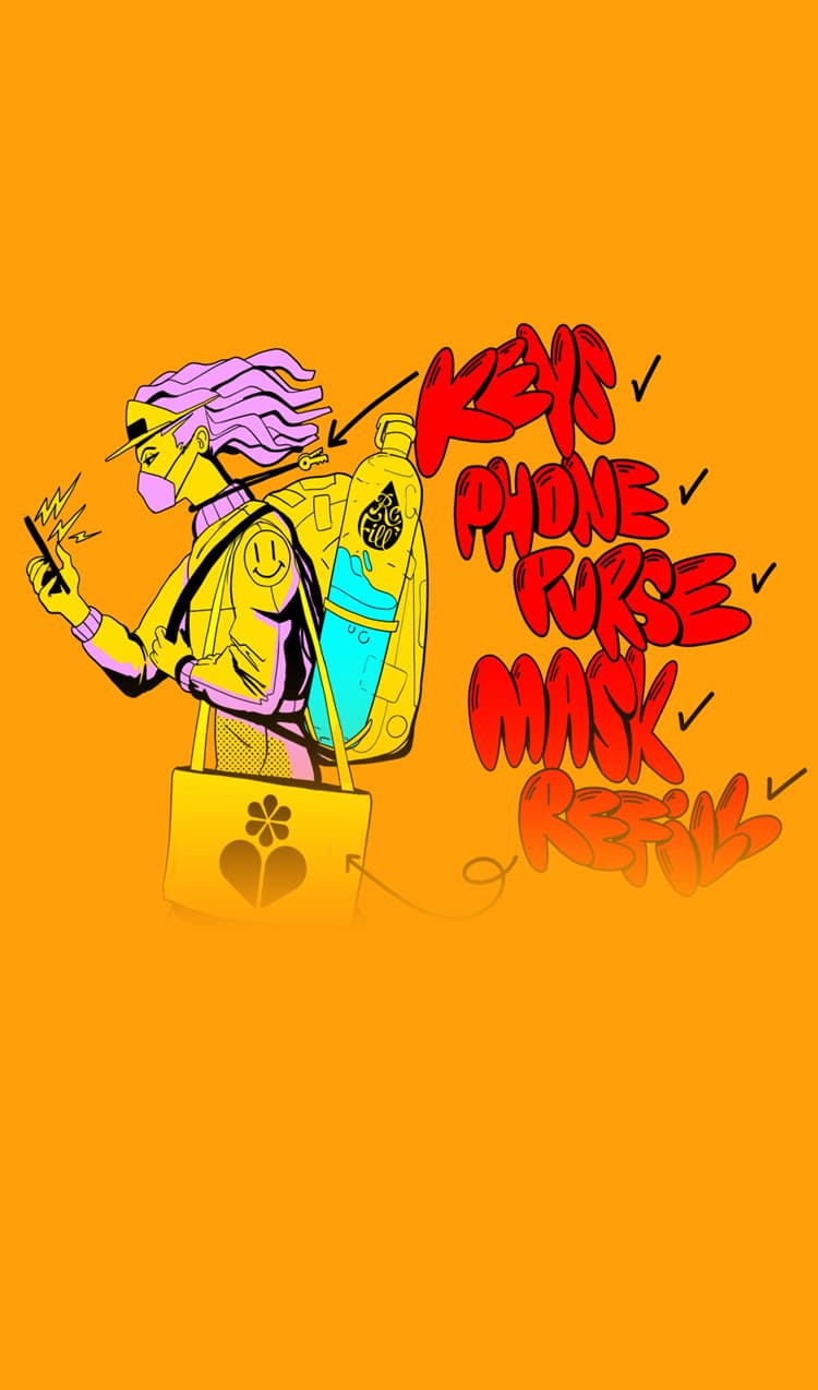 But how to remember to take them out with you? Cue a creative experiment. We teamed up with seven artists and illustrators who are all passionate about sustainability and climate change. We had one specific ask – remind people to refill. Creativity is a powerful force and we want to see if it can help people remember to refill and ultimately create a valuable new habit.